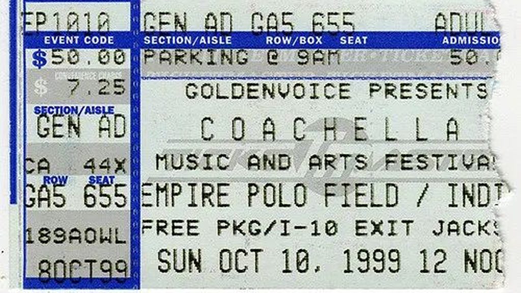 From a ticketing perspective, Coachella 1999 reflected a different era. Daily tickets were priced around $50 per day, which, even adjusted for inflation, seems modest compared to modern headliner‑driven pricing. There were no VIP cabanas, no tiered wristband experiences, and no pre‑sale codes tied to credit cards or brands. The model was simple: general admission access to multiple stages and art installations, with camping not yet the fully developed feature it would later become.