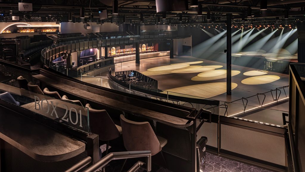 The layout is classic club: a GA floor, a stage that feels almost within arm’s reach, and bars positioned along the sides and back.