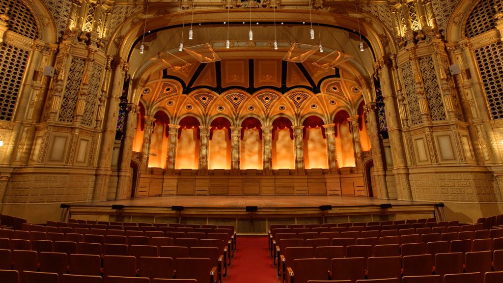 The Orpheum’s gilded balconies, grand pipe organ, and ornate plasterwork create an atmosphere that blends historic elegance with intimate listening conditions. Its choir-balanced design and steep seating tiers ensure strong sightlines, while the acoustics favor clarity and nuance over overwhelming volume. Located just steps from Vancouver City Centre SkyTrain Station, the theatre sits in the heart of downtown’s entertainment district.
